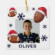 Football Santa Hat Name Photo Christmas Ceramic Ornament