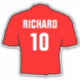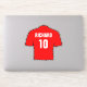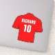 Football sticker. Football shirt design in Red. Personalised with your choice of name and number.
