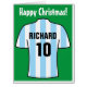 Celebrate Christmas with a personalised card showing your choice of football shirt with an added name and shirt number. Add your own message inside. Sky Blue Stripes Football Shirt.