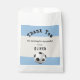 Present your party favours in these fun football themed bags. The bags display an image of a soccer ball and a 'Thank You' message, and can be personalised with a name.