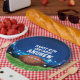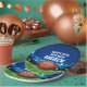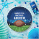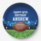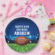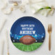Are you ready for some football? Enjoy birthday cake and ice cream on these football themed paper plates! Easily edit with your child's name and birthday number. This design features an illustration of a football stadium and a football.