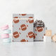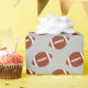 This football sports themed wrapping paper features a repeating pattern of brown and white footballs. Click "Customise It" to select a different background colour you like.