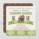 CUTE FOOTBALL THEMED TAILGATE COUPLES WEDDING ENGAGEMENT PARTY OR DINNER INVITATIONS IN GREEN, CREAM, WHITE AND BROWN HUES WITH A FOOTBALL AND HEART DESIGN ON A CREAM AND WHITE STRIPED PATTERN BACKGROUND AND 50 YARD LINE AT THE BOTTOM. ADD THE YEAR OF THE EVENT ON THE PRINTED RIBBON BANNER LOOK DESIGN WITH WHITE HEARTS ON IT. THE BACK OF THIS SPORTS THEME ENGAGEMENT INVITE HAS A BROWN AND WHITE POLKA DOT HEART PATTERN. A COACH, A FOOTBALL PLAYER, QUARTERBACK OR FOOTBALL FAN WILL LOVE THESE STYLE OF INVITES. ARTWORK AND DESIGN © CHRISSY H. STUDIOS, LLC. ALL RIGHTS RESERVED.