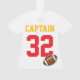 Football design on white background with custom team CAPTAIN in yellow, PLAYER NUMBER in red. Custom SCHOOL in red, custom TEAM NAME in yellow, custom YEAR in red. Easy to personalise text, text colours to own team colours. Great for ANY Football team captain, player award, coach, fan club, parents, event. Personalised, Sporty, Fun. Mix and match entire Football / Sports / Team Spirit / Coach collections.