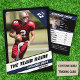 On the front, personalise the essentials: team name, player's full name, position, and jersey number, showcasing your favourite player like never before. Flip it over, and dive deep into the stats that define greatness: birthdate, city, state, height, weight, throwing style, games played, passing attempts, completions, total yards thrown, touchdowns, interceptions – every detail meticulously captured. Plus, uncover the gripping player bio that adds depth to every card.