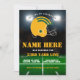 Get ready to score big with this football fanatic birthday design! Picture a 50-yard line backdrop, complete with a football helmet decked out in your favourite team colours—yellow and green, of course. Personalise it with your party details for that one-of-a-kind touchdown. Available as printable invites and instant downloads for a winning party play!