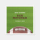 This modern and eye-catching Bar Mitzvah napkin is perfect for an event with an American football theme. The background mimics a football field. A football decorate the design for an impactful look. This theme is perfect for a young man that's into sports and American football. The design is fun, sporty, and will make an impression on your guests.