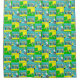 Football themed shower curtain decorated with a colourful cartoon illustration of football players and supporters.