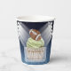 "Touchdown! Celebrate your football enthusiast's special day with our exclusive Football Birthday Design. At the centre, a delightful green cupcake decorated with a football topping awaits, inviting guests to “Join us to kick off “the celebration. Personalised with the birthday child's name and age. This design is a guaranteed touchdown. Set against a backdrop of watercolor gradient dark blue to white, resembling a sky with floating clouds and a faint, transparent football field, the atmosphere is illuminated by floodlights on the top left and right, adding to the excitement of the occasion. Giving the ideal football night atmosphere. It's the perfect paper cup for an unforgettable football-themed birthday bash!" Wonderful birthday party theme for boys. For a themed football party check out our matching items in the “Football Touchdown Birthday Party” collection.