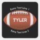 Football, White Name, 2 Text Lines on Black Square Sticker