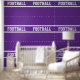 This modern sporty design features athletic white FOOTBALL text highlighted with floating white horizontal racing stripes against royal purple background. The colours and text in this design can be personalised.