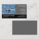 A business card template with a black white edged footer with the upper area masked with a photo and text panel. Photo or art work image on the left (which can also be replaced with your own photo) with a panel for name and details on the right. Space for company name at the left of the footer with Telephone, web and email contact details on the left. Can also be customised for other uses. NB the photo area is masked, if you are replacing the image you may need to adjust the size of your photo.