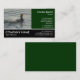 A business card template with a black white edged footer with the upper area masked with a photo and text panel. Photo or art work image on the left (which can also be replaced with your own photo) with a panel for name and details on the right. Space for company name at the left of the footer with Telephone, web and email contact details on the left. Can also be customised for other uses. NB the photo area is masked, if you are replacing the image you may need to adjust the size of your photo.