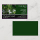 A business card template with a black white edged footer with the upper area masked with a photo and text panel. Photo or art work image on the left (which can also be replaced with your own photo) with a panel for name and details on the right. Space for company name at the left of the footer with Telephone, web and email contact details on the left. Can also be customised for other uses. NB the photo area is masked, if you are replacing the image you may need to adjust the size of your photo.