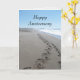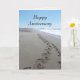 This photograph was taken on a beach in Marin County, California. It shows beautiful ocean waves, blue sky, and two side-by-side sets of footprints trailing down the beach. A perfect anniversary card for the one you love.