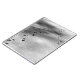 A dusting of fresh snow covers a black driveway with varying densities. Two sets of black boot prints start side by side at the top of the image and diverge as they approach the viewer in this vertical, black and white photograph. One set of tracks heads out the bottom left corner while the other set of footprints exits halfway down the right side of the frame.