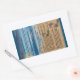 A Painting of a beach with footprints and the poem footprints in the sand.