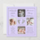 Create a birth announcement that is as unique as your precious child with this "Hello Little One" four photo design featuring your baby's name, birth statistics, parents and siblings' names. In the centre are two template lines for your personal message or you can use ours. This messaging is on top and bottom of your child's optional footprints (add left and right separately). All text and background colours can be modified as desired. Shown here in light lavender. Design by Holiday Hearts Designs (rights reserved) with template placeholder photos via Unsplash.