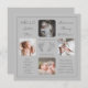 Create a birth announcement that is as unique as your precious child with this "Hello Little One" four photo design featuring your baby's name, birth statistics, parents and siblings' names. In the centre are two template lines for your personal message or you can use ours. This messaging is on top and bottom of your child's optional footprints (add left and right separately). All text and background colours can be modified as desired. Shown here in light grey. Design by Holiday Hearts Designs (rights reserved) with template placeholder photos via Unsplash.
