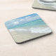 Footprints on White Sandy Beach, Scenic Aqua Blue Coaster