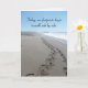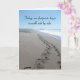 This pre-wedding card for either the bride or groom shows a California beach and ocean scene with a lovely blue sky. There are two sets of footprints walking down the beach side by side.