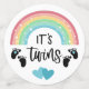It's twins baby shower table confetti with a rainbow and baby footprints with blue hearts. Boy twins baby shower table confetti with a rainbow and baby footprints. Cute twins baby shower table confetti for baby boys with cute hearts stamped on little baby footprints. Oh babies table confetti with rainbows and footprints and hearts.