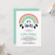 Gender neutral It's twins baby shower invitation with a pretty rainbow and baby footprints with little hearts. Twins baby shower invitation with a rainbow and baby footprints. Cute twins baby shower for any gender with cute mint green hearts stamped on little baby footprints.
