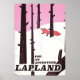 featuring a cute fox in a snowing landscape woodland of Finnish forest vintage travel poster.