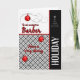 Masculine Red, Black and White holiday card adorned with ornaments, plaid and swirls. This is a cool greeting card is great for bringing a smile to the face of your favourite barber – in fact, perfect to include a holiday tip!