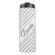 Thermal tumbler for her the Bride, wedding day. Personalise the text in this designer black and white bold diagonal stripe design with name or message, or text is removable. Colours can be switched to any colour.
