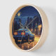 "A unique design for car enthusiasts on a wall clock, featuring a sports car with stunning details and vibrant colours. This wall clock is perfect for car lovers who want to add a personal and distinctive touch to their home or office decor, highlighting the design of the car."