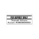 All text can be edited, changed, or deleted. For deposit only is at the top. In the middle, you can add the correct name. At the bottom, there's a place for the bank account number.