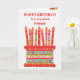 You can add the age to this brightly colored birthday card for your friend, with a strawberry birthday cake. The cake has lots of candles with different patterns and there is a patterned band around the cake with colorful summer fruits - strawberries, raspberries, limes and orange slices. Above the cake, the greeting, in red lettering, is 'HAPPY BIRTHDAY to a very special Friend' and on the cake there is a space for you to add the age, followed by 'years old today!' in white lettering. Please feel free to customize the inside message if you wish; you can change the font and the color as well as the message.