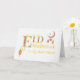 A stylish greeting card for your friend, with decorative lettering outline in gold-effect and filled with brightly colored islamic patterns. The front cover greeting is, 'Eid Mubarak. to my dear Friend!' There is a brightly colored lantern in the bottom left corner, hanging underneath the letter 'E' and a patterned moon and star in the top right hand corner, with two more lanterns and an Islamic Star suspended from the moon. The white background on the front cover is lightly textured and the inside message is just a suggestion which you can easily change or delete if you wish.