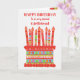 You can add the age to this brightly colored birthday card for your girlfriend, with a strawberry birthday cake. The cake has lots of candles with different patterns and there is a patterned band around the cake with colorful summer fruits - strawberries, raspberries, limes and orange slices. Above the cake, the greeting, in red lettering, is 'HAPPY BIRTHDAY to a very special Girlfriend' and on the cake there is a space for you to add the age, followed by 'years old today!' in white lettering. Please feel free to customize the inside message if you wish; you can change the font and the color as well as the message.
