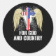 FOR GOD AND COUNTRY AMERICA FLAG CLASSIC ROUND STICKER