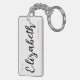 Elegantly scripted well-loved John 3:16 Bible verse keychain in black and pink with space on the back for a name and other personalised text.