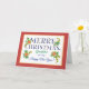 An elegant Christmas card for a Grandfather, with Poinsettias, sprigs of Holly, Ivy and Fir Tree and deep blue lettering, outlined in gold-effect (ie not metallic paint), all within a deep red border. You can customise the inside message and this design is also available with a front cover to personalise.