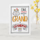 Bold yellow, red and black on white in a silly owl themed illustration with kid-friendly elements on this Grandparents Day card for grandma.