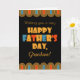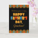 A stylish Father's Day greeting card for your grandson, in an Art Deco style. The front cover greeting is, 'Wishing you a very HAPPY FATHER'S DAY, Grandson!' in bright red, blue and golden yellow on a black background. There are curved Art Deco patterns at the top and bottom and the inside message is just a suggestion which you can easily change or delete altogether if you wish.