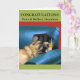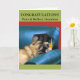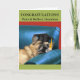 For Grandson, congratulations on graduation, paper greeting card. Paws & Reflect message with a German Shepherd resting on a blue leather couch and wearing a graduation cap. Customise the cover and interior text as you like. Art, image, and verse copyright © Shoaff Ballanger Studios, 2023.