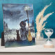 Bring a touch of magic with this charming watercolor painting by Farida Greenfield, showcasing an enchanting scene of a witch and her black cat enjoying a peaceful evening on a grassy meadow. The serene setting under a silvery moon and twinkling stars creates a magical atmosphere that is sure to bring a smile to the recipient's face.