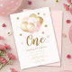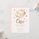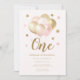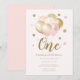 Girl's first birthday party invitation featuring gold and pink balloons which can easily be customised to include your little one's name and party details. The design features sweet balloons in gold and pink and the font is in a gold colour. The front of the invitation is in a very light pink and the back of the invitation is in a sweet darker shade of pink. The design is cute, modern and chic - perfect for your little girl.