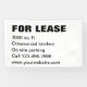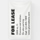 This outdoor banner is white with black display text. You can edit this text template for any purpose. It's shown as a business banner to advertise a commercial property for lease. The top line (header) is in a bold font to grab attention. There are five additional lines of text for the property description and contact information such as a phone number and website. All text can be edited or deleted.