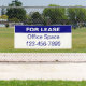 The top line of the display text is white and says FOR LEASE. The second line of the text is navy blue and is for a custom message (Shown: Office Space). The bottom line has navy blue display digits for a phone number. All text can be edited or deleted.
