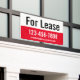 This is a template banner. For Lease appears in bold black text at the top. You can edit the text if needed. The sign is red at the bottom and has white text and digits for your phone number and email address.