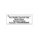 For mobile deposit only is under the blank signature line at the top. You have text for the business name and bank name. At the bottom, there are digits for the bank account number. This is a check endorsement stamp to help your company's bank deposits get to the right account. All text is in a bold font and can be edited or deleted.