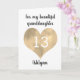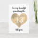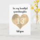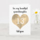 A personalized granddaughter birthday card that features a pretty gold heart. You can personalize gold heart with the age you need and add her name underneath the heart. The inside card message reads "I hope that today and every day is filled with lots of love, laughter & fun. I love you, always.Happy 13th Birthday!" The card message can also be easily edited. The back of this gold heart card reads Happy Birthday.
