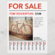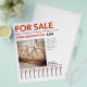 Easy FOR SALE layout with customizable text and photo templates including the tear off, pull tabs at bottom. Want to change font colors? Click the customize further link.