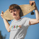 Create custom gear for your favourite skater with this skateboarding themed graphic tee that's ready to be personalised with your own message. It features silhouette style illustrations of skateboarders in mustard yellow, turquoise blue, dark red, green and rust orange. Your text appears below the graphics in charcoal grey lettering.